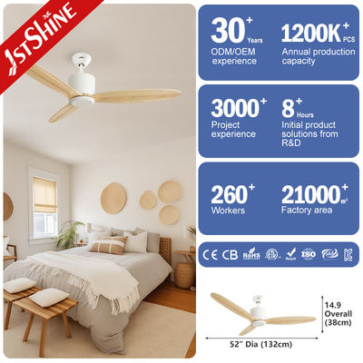 Ventilateur de plafond de 52 pouces avec moteur à courant continu à distance décoratif 3 lames en bois sans lumière