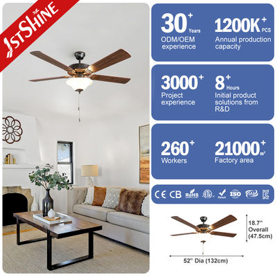 Ventilateur de plafond rétro Tendance Nouveau 5 lames en MDF avec lumières Traditionnelle chaîne de traction