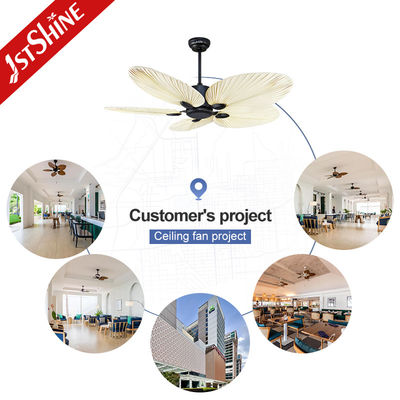 Les lames en forme de feuilles de palmier ajoutent un look unique dans les espaces traditionnels tropicaux et modernes du milieu du siècle.Les larges lames ABS moulées complètent l'aspect tropical moderne de ce ventilateur de plafond LED à température d'humidité.