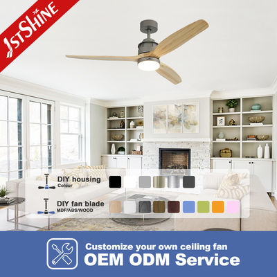 Ventilateur de plafond LED à distance de 52 pouces 3 lames en bois massif naturel