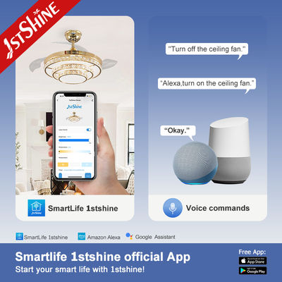 Ventilateur de plafond rétractable en cristal 220V avec télécommande et moteur AC