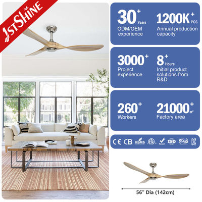 56 pouces moteur à courant continu 3 lames en bois massif ventilateur de plafond avec télécommande