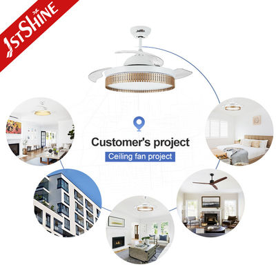 Ventilateur de plafond rétractable moderne à 5 vitesses avec lumière LED 3 couleurs