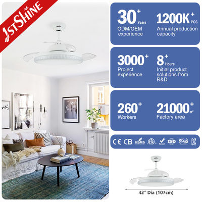 Lorsque vous allumez la lumière et éteignez le ventilateur, cela ressemble à un luminaire de plafond semi-encastré et les pales du ventilateur sont cachées et rétractables. Il a un diamètre maximum de 42 pouces lorsqu'il est déployé et de 21 pouces lorsqu'il est rétracté. Il est parfait pour la chambre d'enfant, la salle à manger, le salon, le couloir.