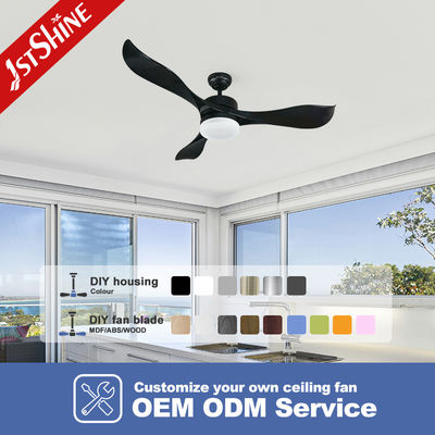 Ventilateur de plafond LED en plastique de 52 pouces, lame en plastique noir moderne.