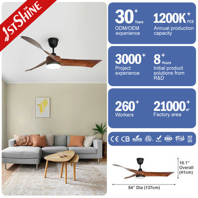 Ventilateur de plafond LED de couleur bois de 54 pouces 3 lames en plastique avec télécommande