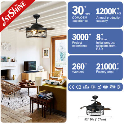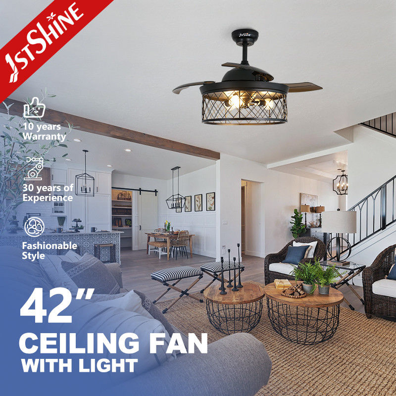 Notre ventilateur de plafond de style ferme avec lumières possède 3 pales de ventilateur invisibles, qui s'étendent et se rangent automatiquement à l'allumage/extinction du ventilateur. La pale est fabriquée en matériau PC de haute qualité, ce qui la rend plus durable. S'adapte à vos besoins en toutes saisons. Les lumières du ventilateur de plafond de style ferme ont 3 douilles E26 standard, et chacune des douilles est divisée. Toute ampoule LED E26 est facilement assemblée sans retirer la cage. Idéal pour le salon, la chambre à coucher, le restaurant, la salle à manger, etc.