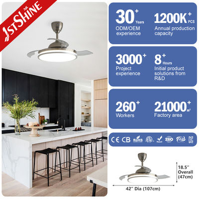 Notre ventilateur de plafond à LED invisible de style moderne, conçu pour améliorer vos espaces de vie avec fonctionnalité et style.Ce ventilateur de plafond LED de 42 pouces possède un design élégant et contemporain qui s'intègre parfaitement dans n'importe quelle pièce, ce qui en fait un choix idéal pour les zones à plafond bas et à espace limité, telles que les chambres à coucher, les salons, les cuisines, etc.