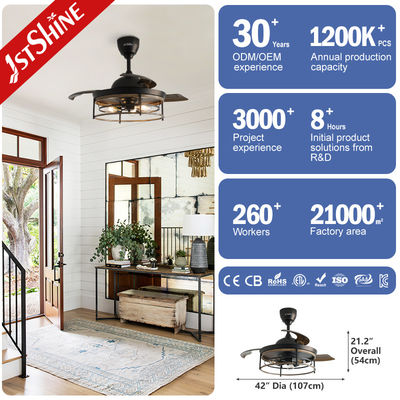 Notre ventilateur de plafond de ferme avec lumières a 3 pales de ventilateur invisibles, qui s'étendent et se rangent automatiquement lorsque le ventilateur est allumé/éteint. La pale est fabriquée en matériau PC de haute qualité, ce qui la rend plus durable. S'adapte à vos besoins en toutes saisons. Les lumières du ventilateur de plafond de ferme ont 3 douilles E27 standard, et chacune des douilles est divisée. Toute ampoule LED E27 est facilement assemblée sans retirer la cage. Idéal pour le salon, la chambre à coucher, le restaurant, la salle à manger, etc.