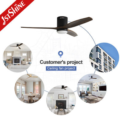 Décoratif 3 lames en bois naturel monté à la chasse à l'eau Led Tuya Smart Ventilateur de plafond avec lumière