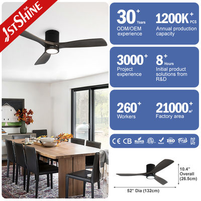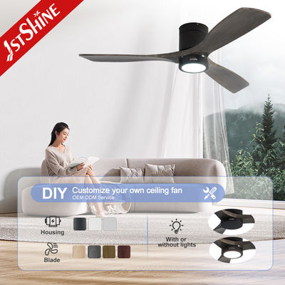 Décoratif 3 lames en bois naturel monté à la chasse à l'eau Led Tuya Smart Ventilateur de plafond avec lumière