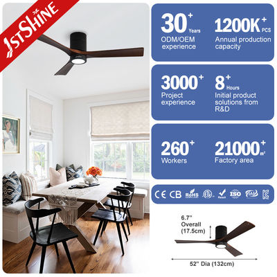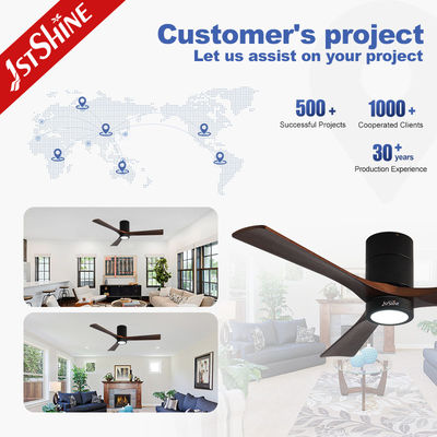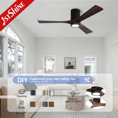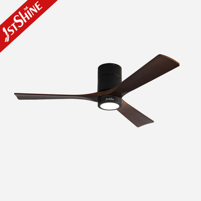 Décoratif 3 lames en bois naturel montée à la chasse à l'eau Led Tuya Smart Ventilateur de plafond avec lumière