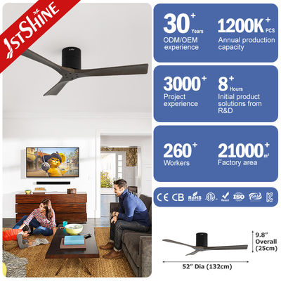 Ventilateur de plafond en bois à 3 lames avec moteur CC Black Finished Solid Wood Design