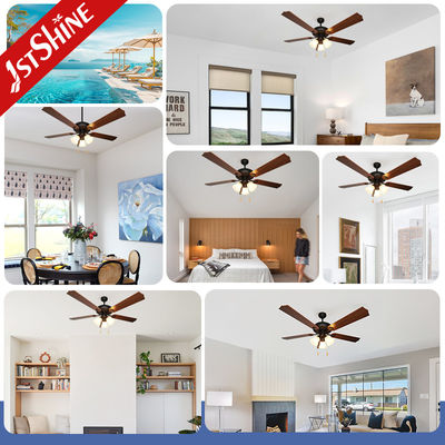 Ce ventilateur de plafond traditionnel combine fonctionnalité et look intemporel avec de riches lames en MDF en grains de bois, des nuances de tulipes de style vintage et un moteur AC fiable,Il apporte le charme et le confort classique à n'importe quel intérieur..