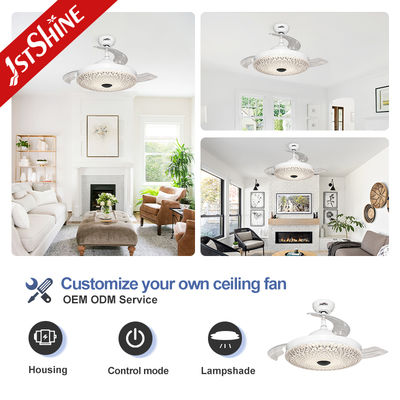 Les pales rétractables en acrylique s'étendent automatiquement lorsque le ventilateur est en marche et se rétractent lorsqu'il est éteint, conservant une apparence épurée de type lustre. L'abat-jour en acrylique de style cristal améliore la diffusion de la lumière et apporte une touche luxueuse à tout intérieur.